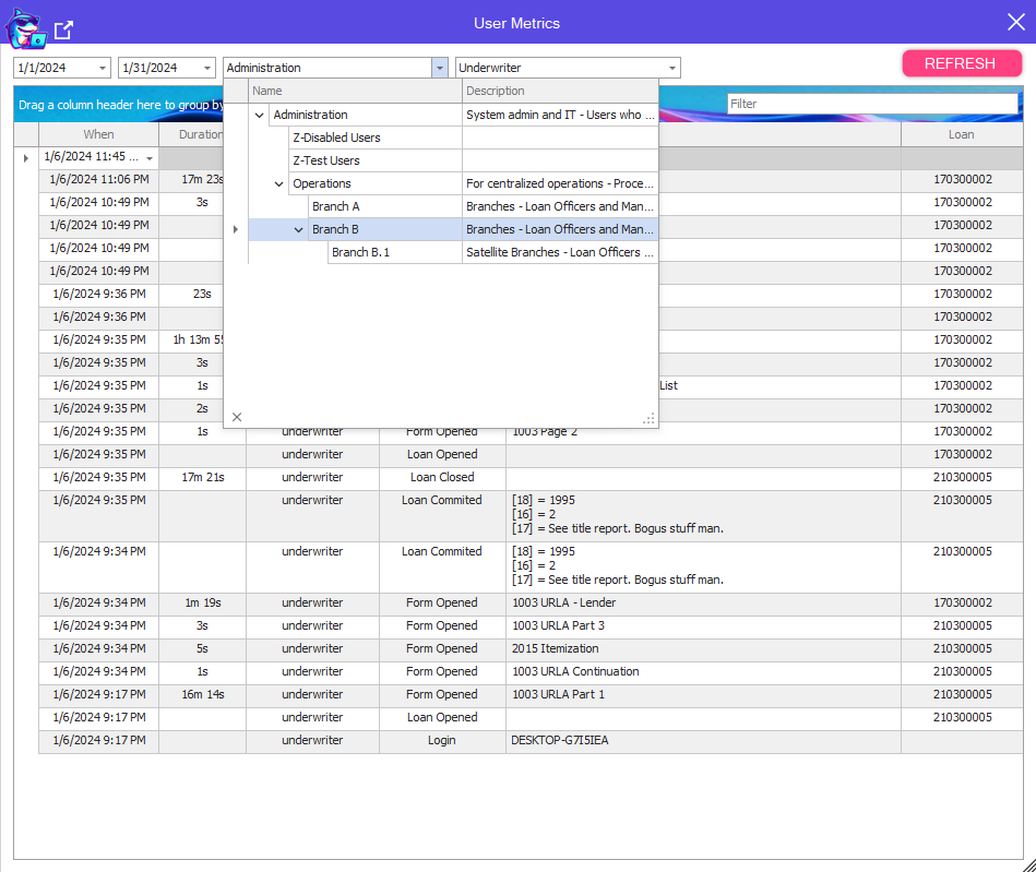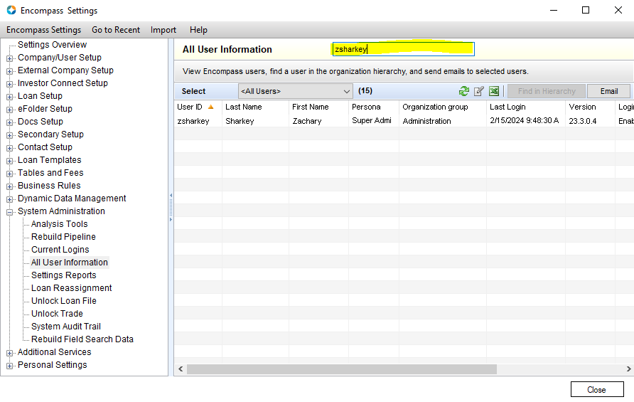 Track all of your Users activity in Encompass including: