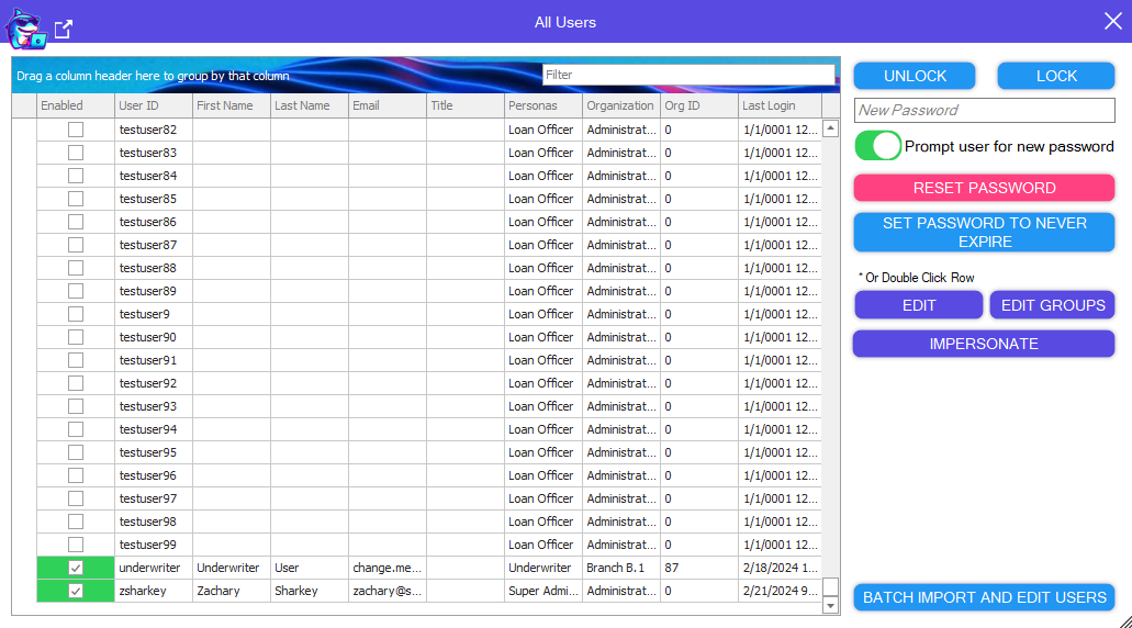 Unlock, Lock, and reset Users passwords with 1 click.