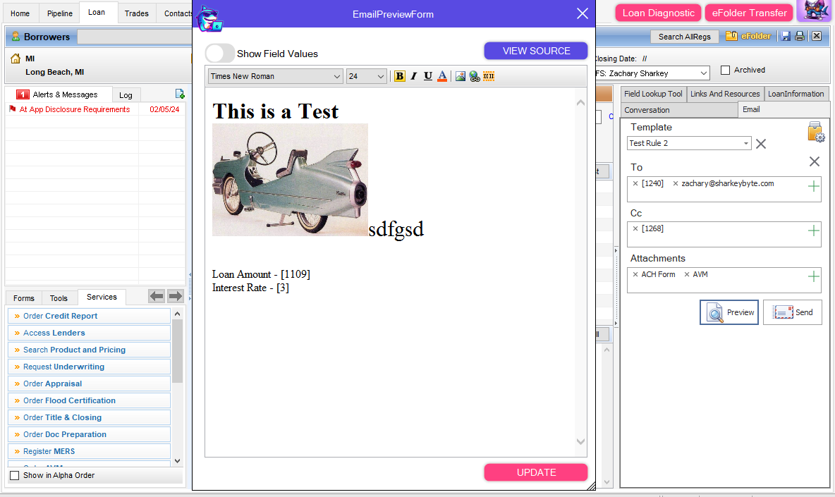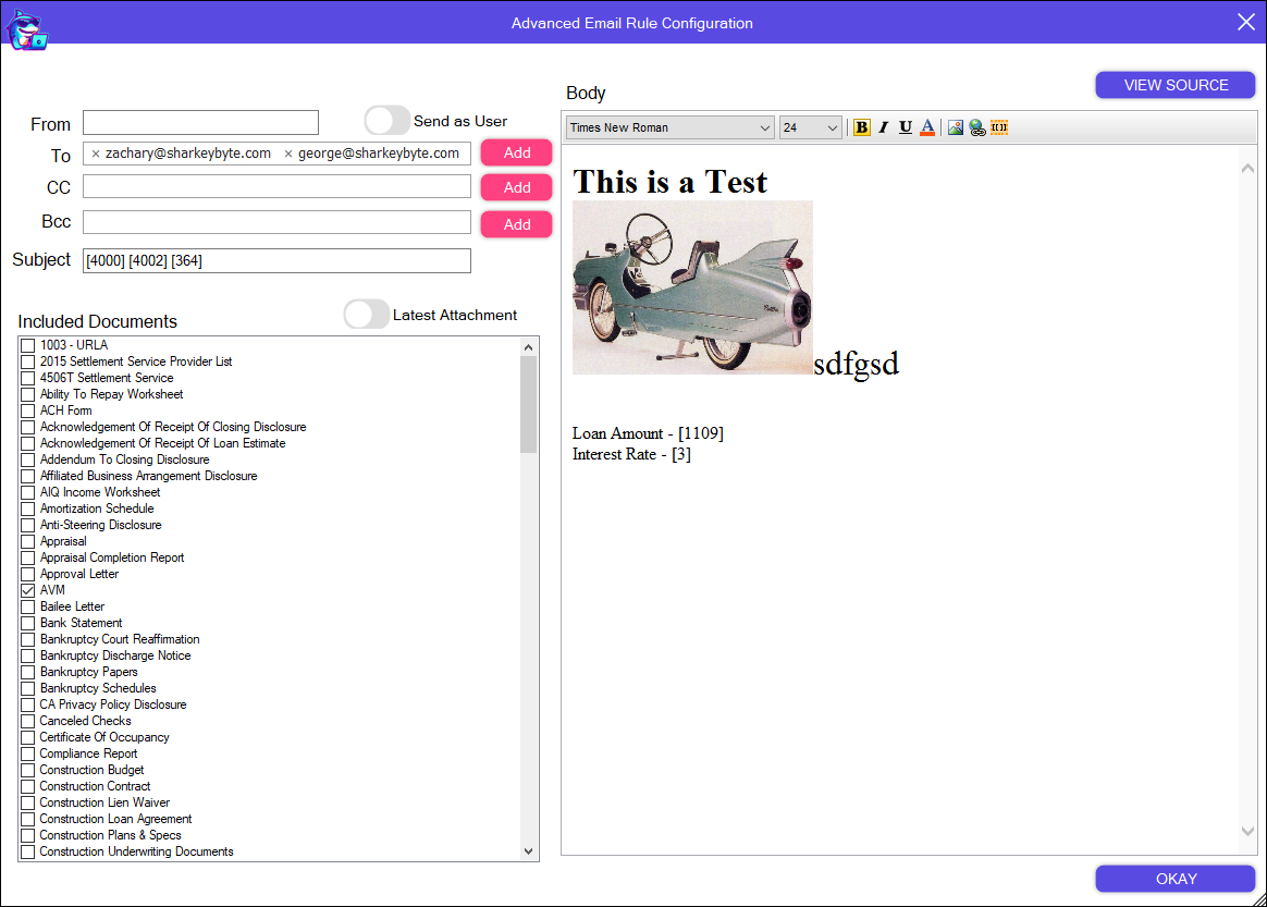 Create HTML email triggers using Loan Data and Loan Documents