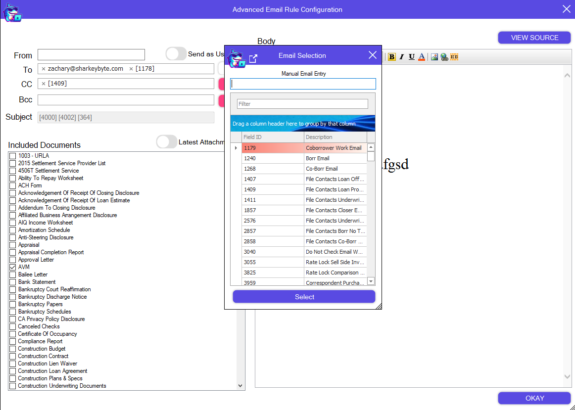 New Feature - Advanced Email - Added ability to add emails based on Encompass Fields