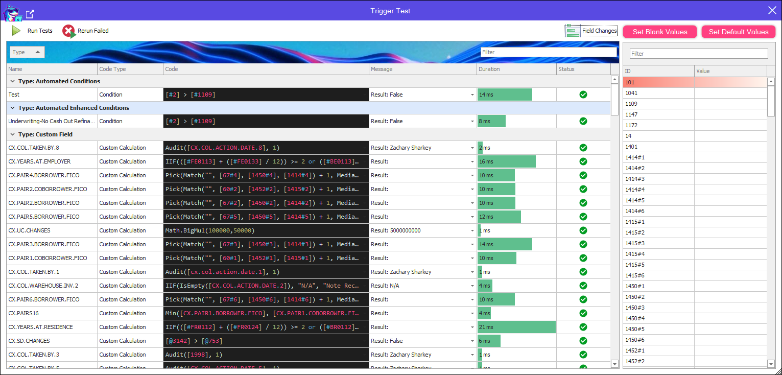 The Code Tester allows you to Test your Conditions, Advanced Conditions, Advanced Code and Calculated Fields