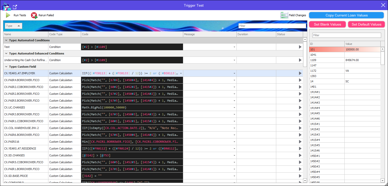* New Feature - Analysis Code Tester - Copy Current Loan Values