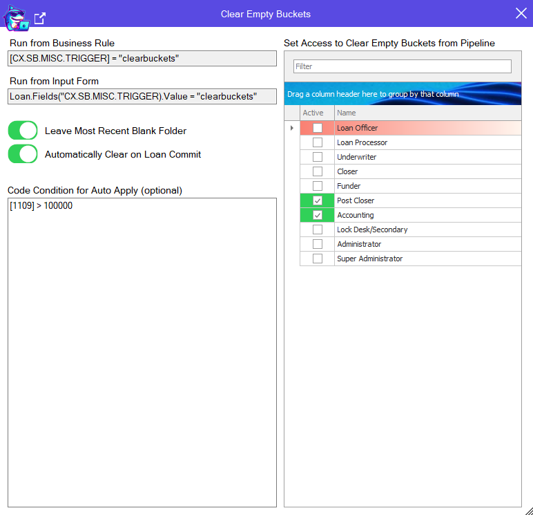 * New Tool - Clear Escrow Account - Clear Escrow Account from Business Rules or Custom Input Forms.