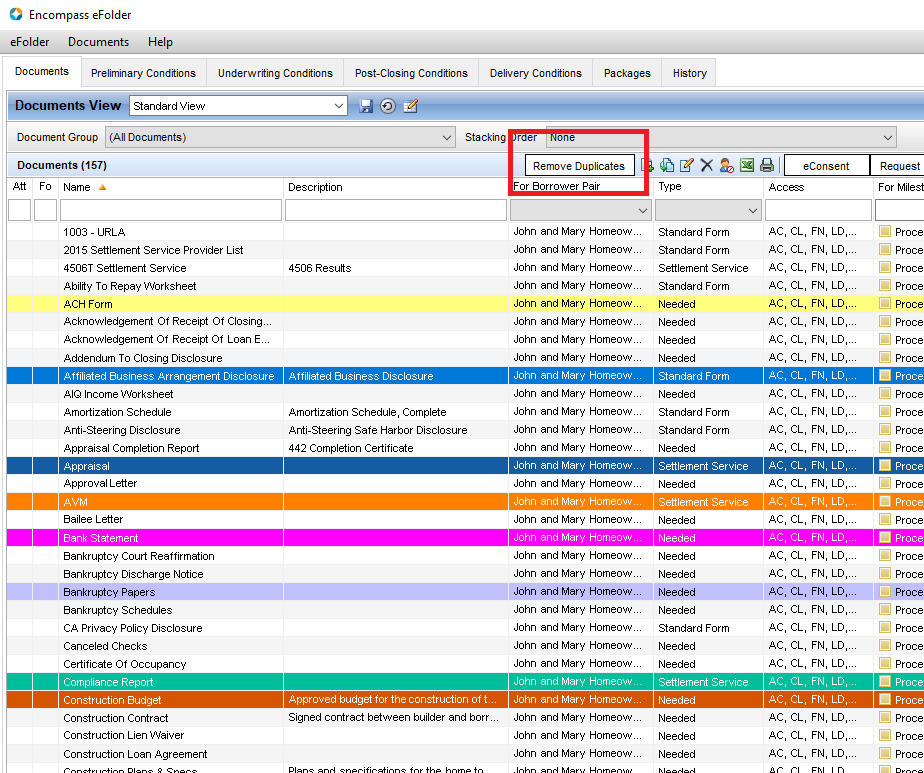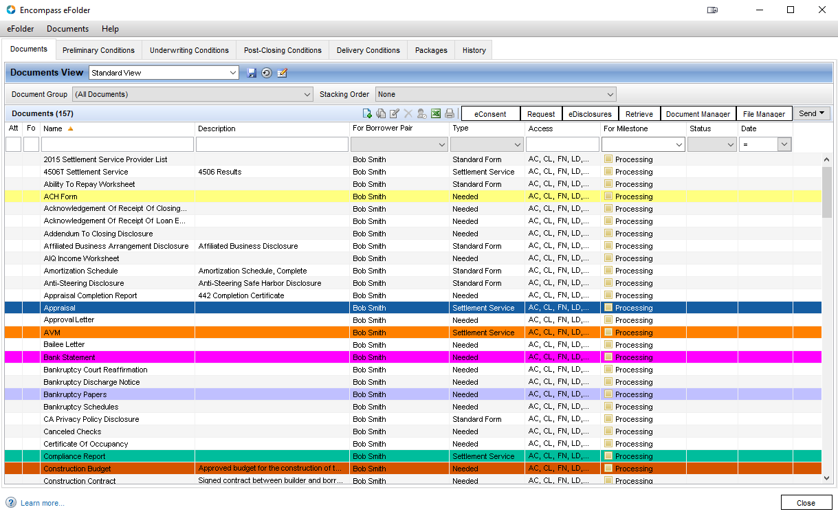 Color your eFolder Documents and Conditions based on any property available, or a combination of properties avaliable.