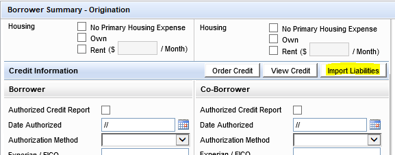 Option for opening loans to run business rules, import liabilities, retrieve documents, and run home counseling