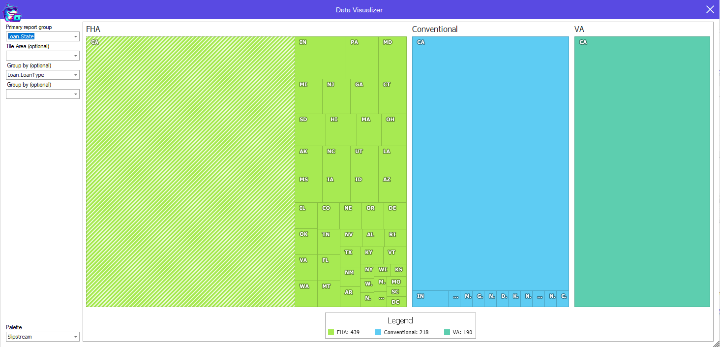 Group by State, branch, Loan Type or any column you want.